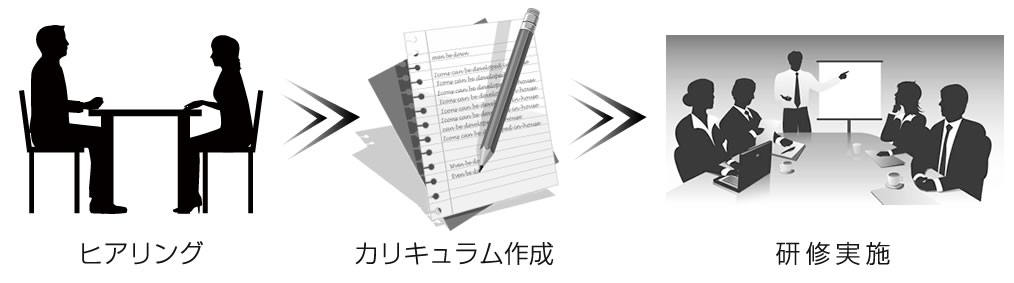 プロのコンサルタントが、会社の問題点(潜在的問題点と顕在的問題点)を的確に見つけ出し、 それを解決するためのカリキュラム、もしくは将来のゴールに最速で拡張できる最適なプランと 研修内容をご提案致します。